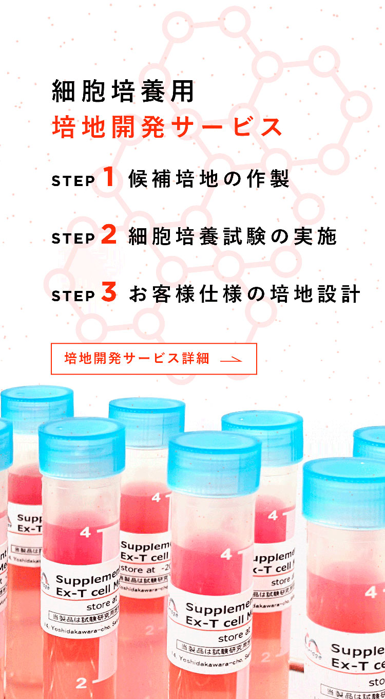 当社独自の培地成分ライブラリーを基に開発した、様々な細胞培養用の無血清で機能的な培地をご案内します。