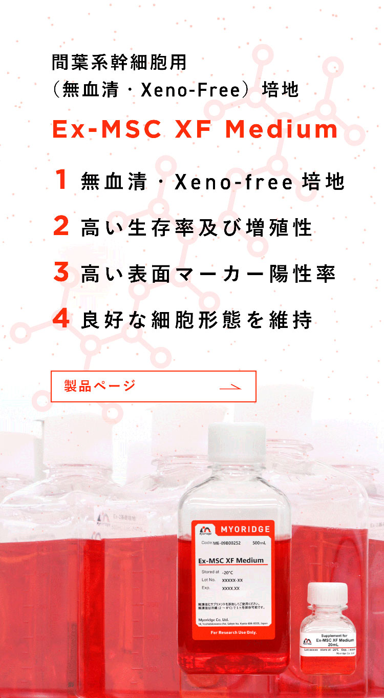 マイオリッジが開発するMSC培地のアプリケーションTissue factor(TF)発現を介した MSCの向血栓性への培地の影響のアプリケーションデータを追加しました。